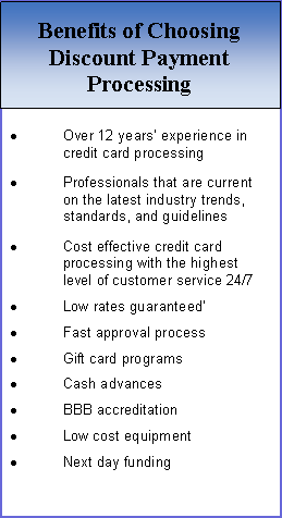 Discount Payment Processing requires a signed hard copy merchant processing application and agreement.